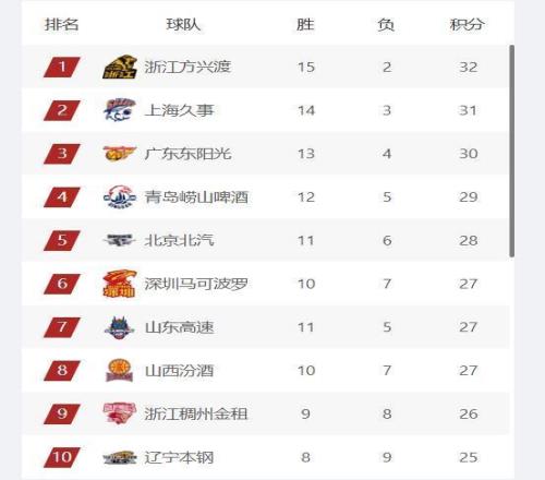 辽宁队近期遭遇二连败,排名第10,其实按照胜率计算辽宁队的真实排名会更低,目前辽宁队是8胜9负积25分,胜率47.1%;浙江稠州队是9胜7负也是积25分,胜率56.3%。浙江稠州队在少赛一场的情况下和辽宁队积分相同,虽然在双方互相胜场方面吃亏,但是不管接下来这一场比赛浙江稠州队是否能够拿下,他们的积分排名都会在辽宁队前面。