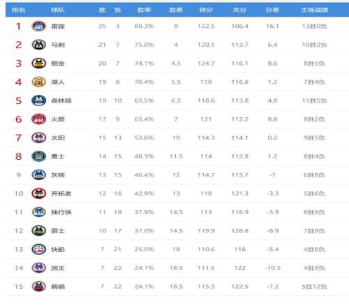 今日比赛后火箭、森林狼排名互换,国王、鹈鹕排名互换,其他西部球队排名不变。